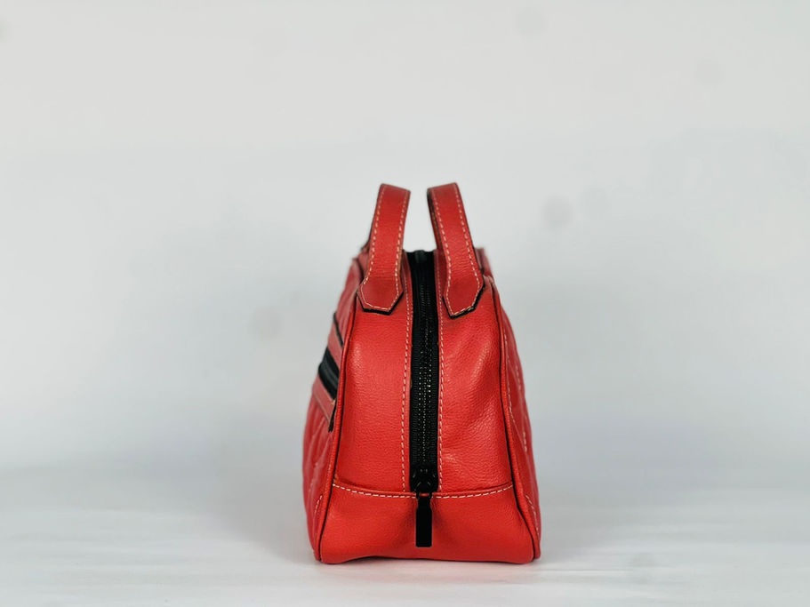 Práctico y elegante bolso neceser, elaborado en cuero vacuno acolchado que ofrece un acabado moderno y resistente.